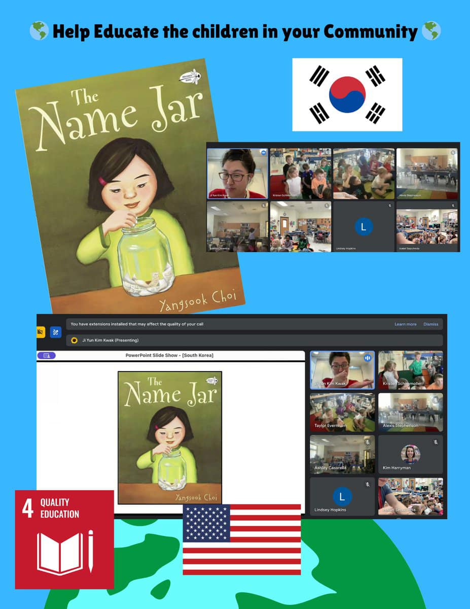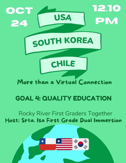 Ensure inclusive and quality education for all and promote lifelong learning at Rocky River First Grade Team Together. Chile, USA, South Korea "We are all connected"